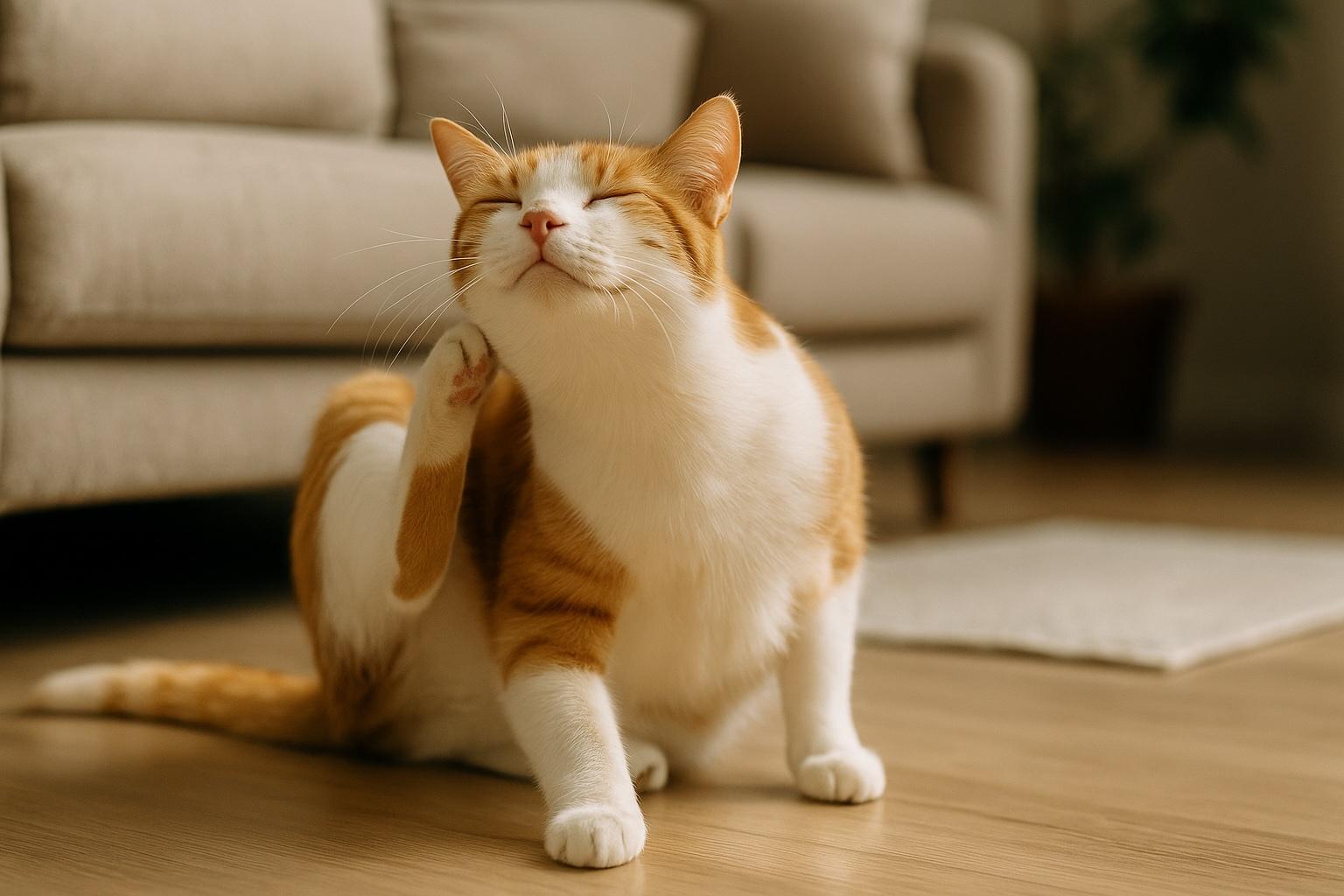 Un gatto che si gratta non è una novità. Si grattano tutti: fa parte della routine di pulizia, è un gesto spontaneo.