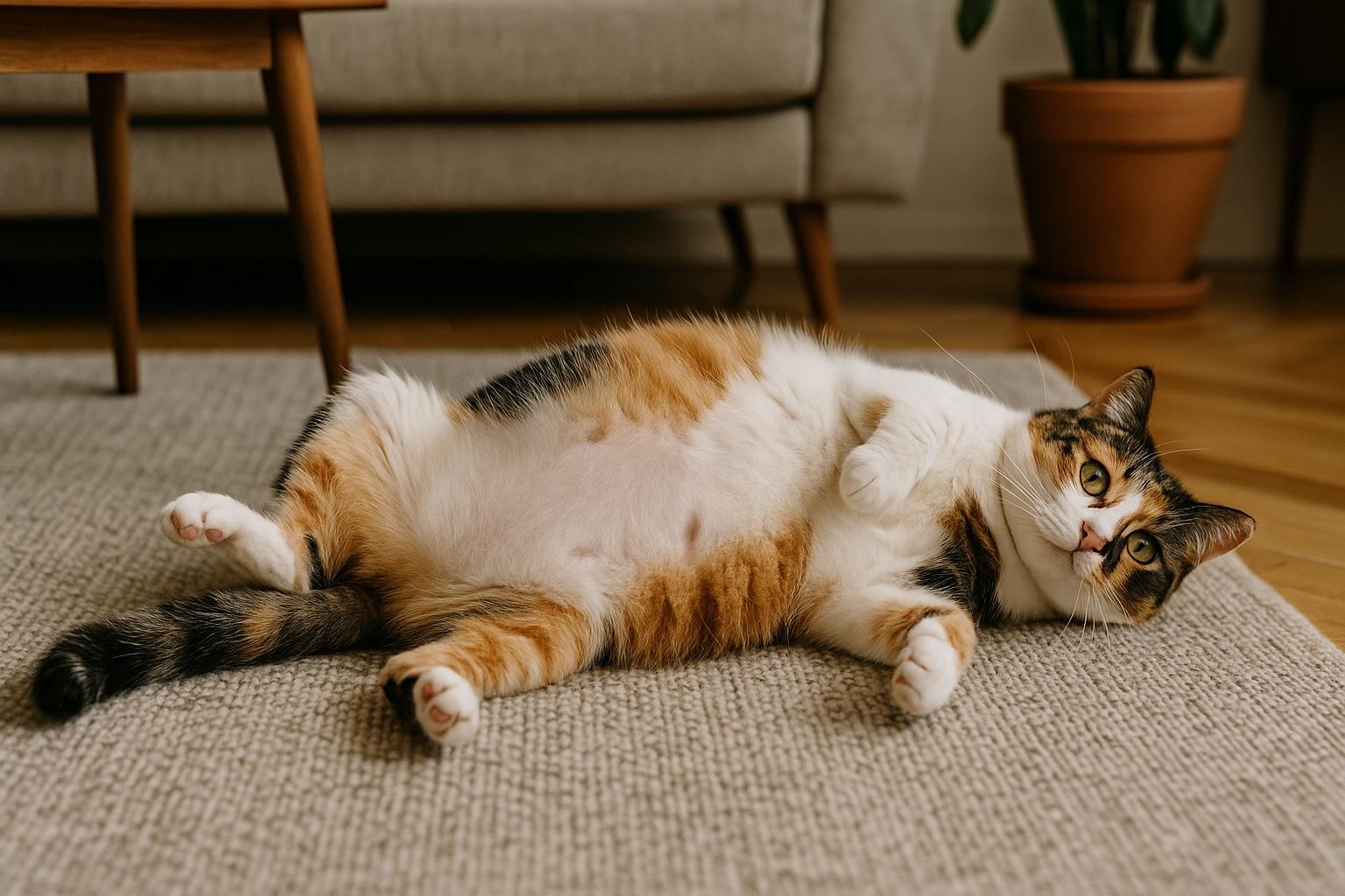 La pancia del gatto obeso non è “gonfia”: è grassa.