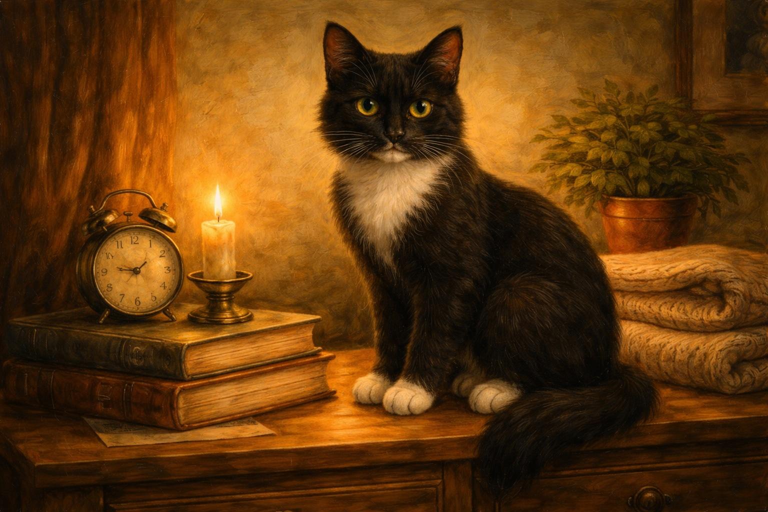 Da quel giorno il gatto continuò ad aspettare, perché nessuno può smettere davvero di farlo, ma smise di lottare contro l’attesa, e scoprì che il tempo, quando non lo insegui, diventa meno pesante.