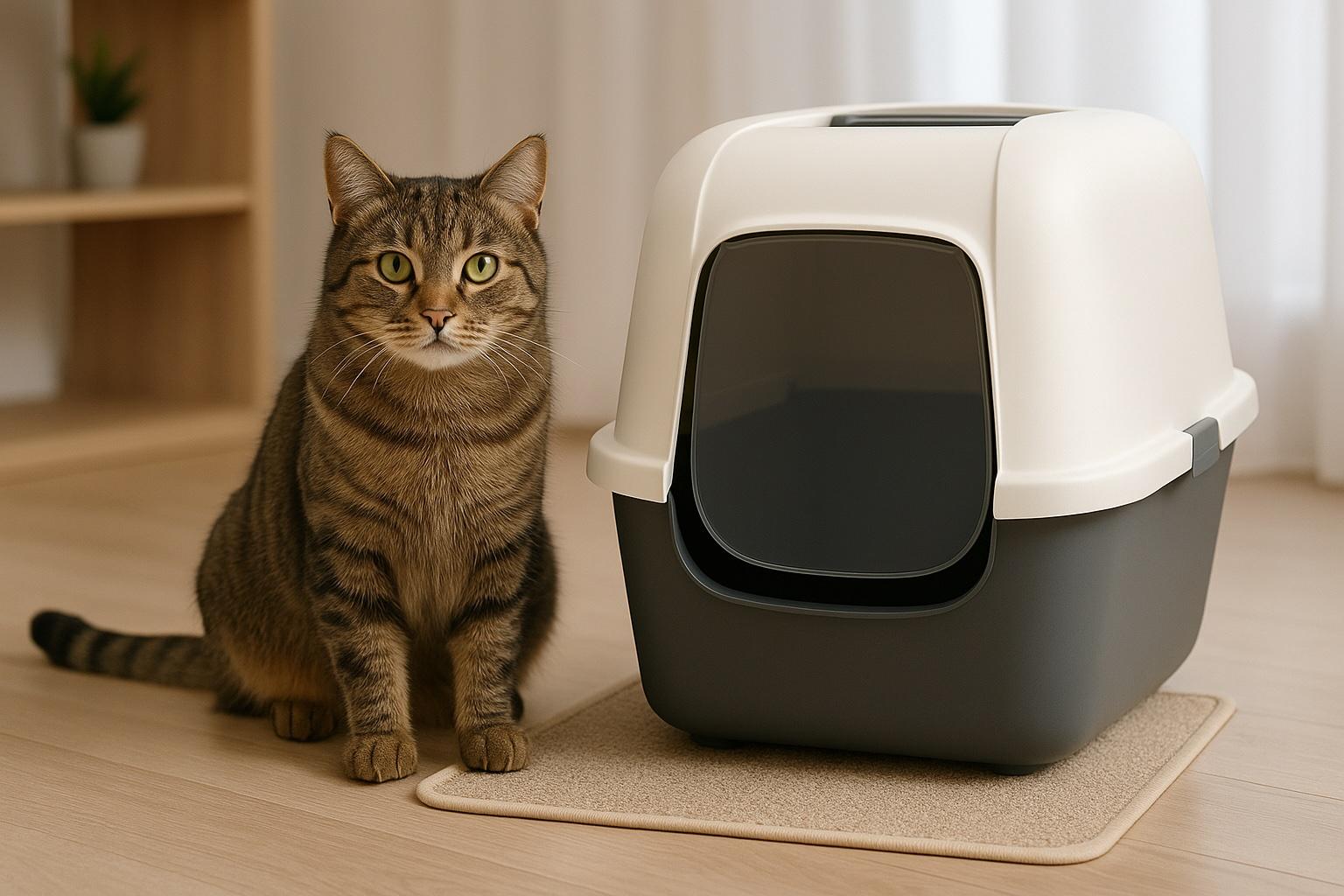 Una lettiera aperta con bordo alto (anche 15–20 cm).