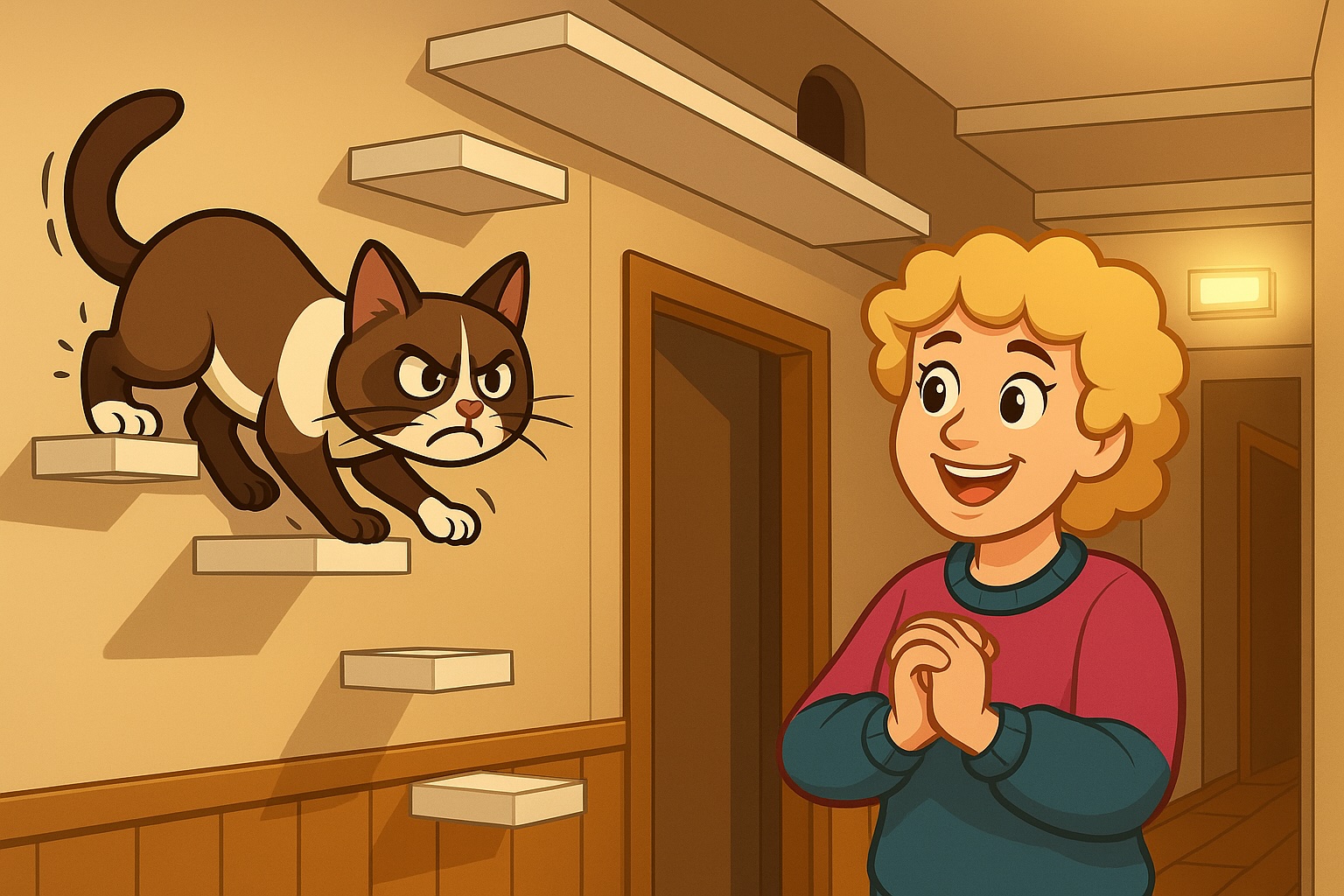 Tutto è iniziato da un’idea tanto geniale quanto pericolosa: “Perché non costruire a Frodo un percorso sopraelevato? Una passerella sospesa tra le pareti, tipo autostrada panoramica per gatti?”.